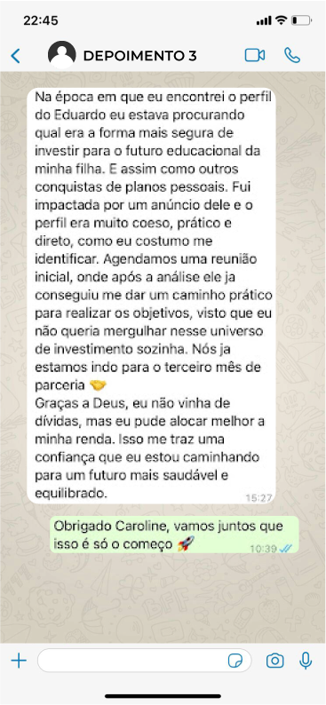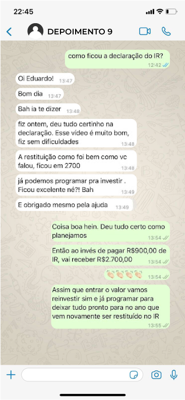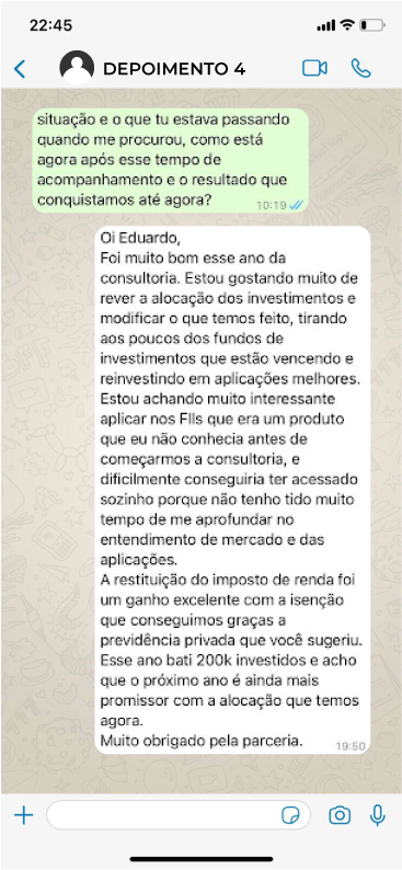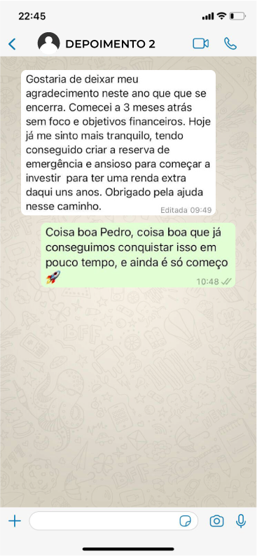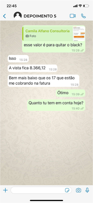 Primeiramente iremos entender detalhadamente a sua situação atual, seus objetivos, prioridades, dificuldades... tendo total clareza do que está acontecendo e o que deve ser feito.